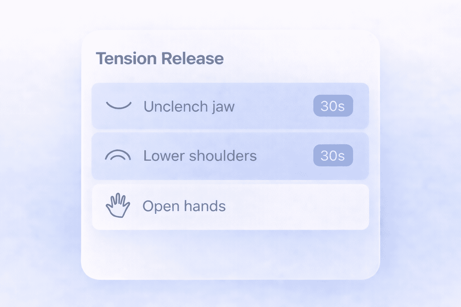 Weekly check-ins keep you aware of your stress levels. Quick resets whenever you need them. That's it.