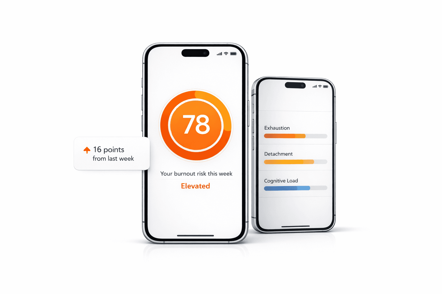 The check-in is based on the Maslach Burnout Inventory, the most validated burnout assessment in occupational psychology. We've adapted it for weekly tracking so you catch trends early.